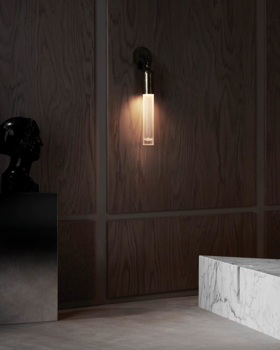 The Tassel series condenses the warmth and decadence of a traditional chandelier to a concise, modern conclusion. emanating from a brass dome, the light is amplified as it refracts through mold-blown glass cylinders. Customisation available