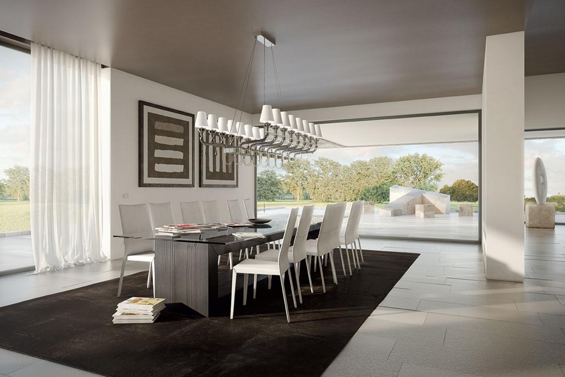In a reversal of expectations, the usual preconceptions are turned upside down and prove to be malleable and open to reinvention: the circle becomes a rectangle, in a reworking of tradition. An elegant decomposition of the classic chandelier. Customisation available
