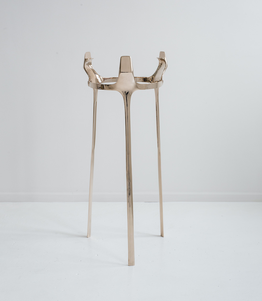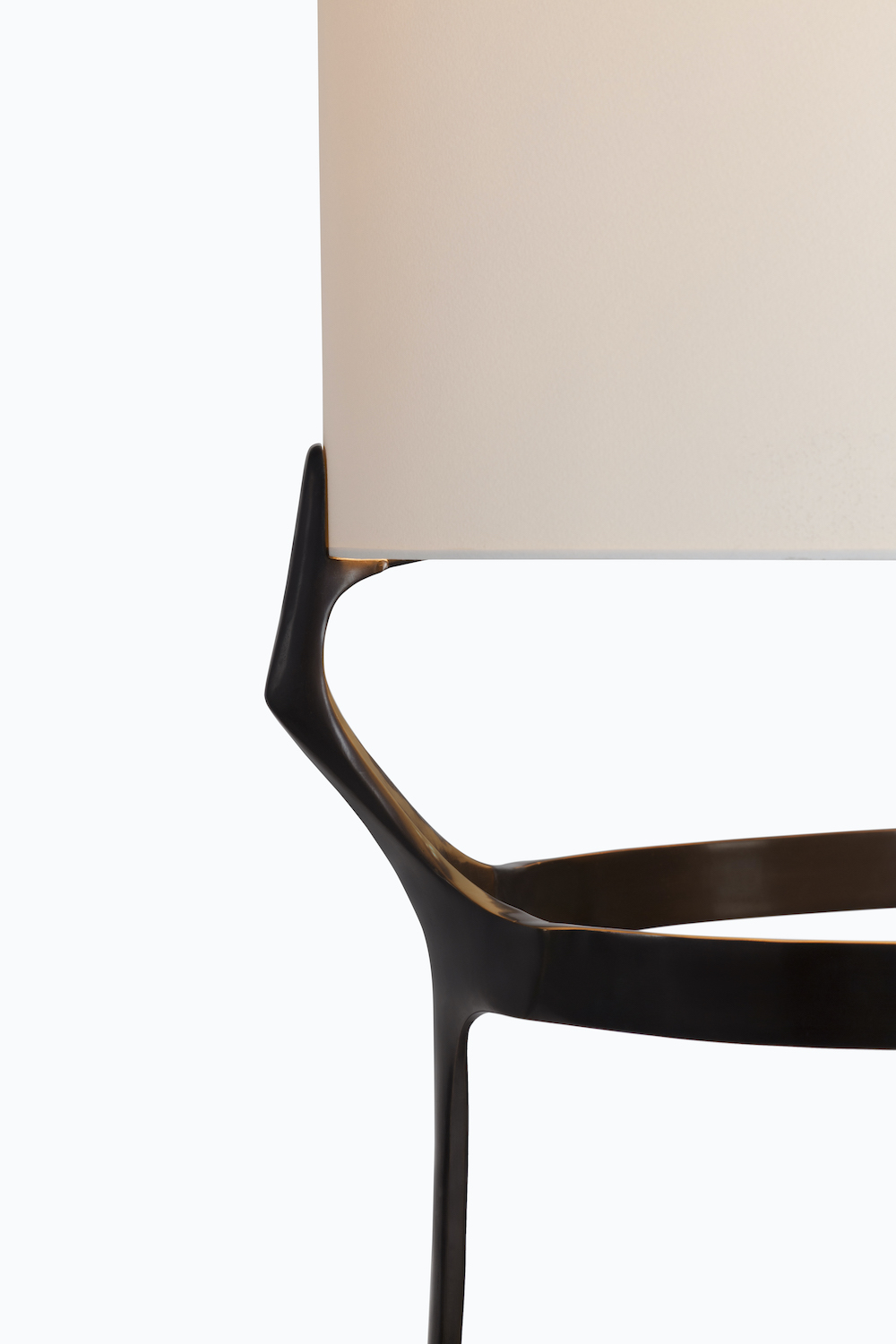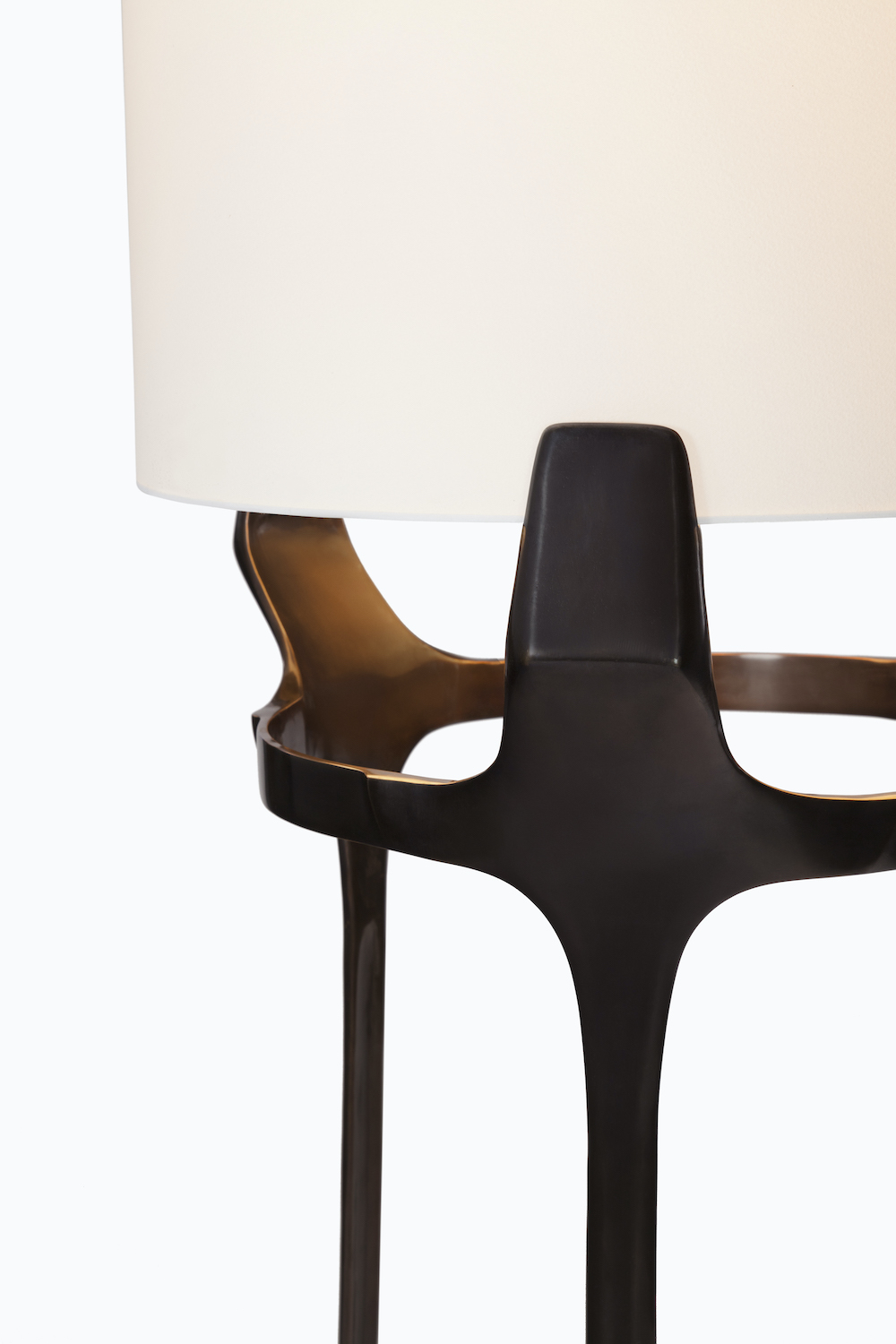 Cast bronze base with a hand-rubbed wax finish. Shown here finished in museum brown with a french paper shade. Customisation available