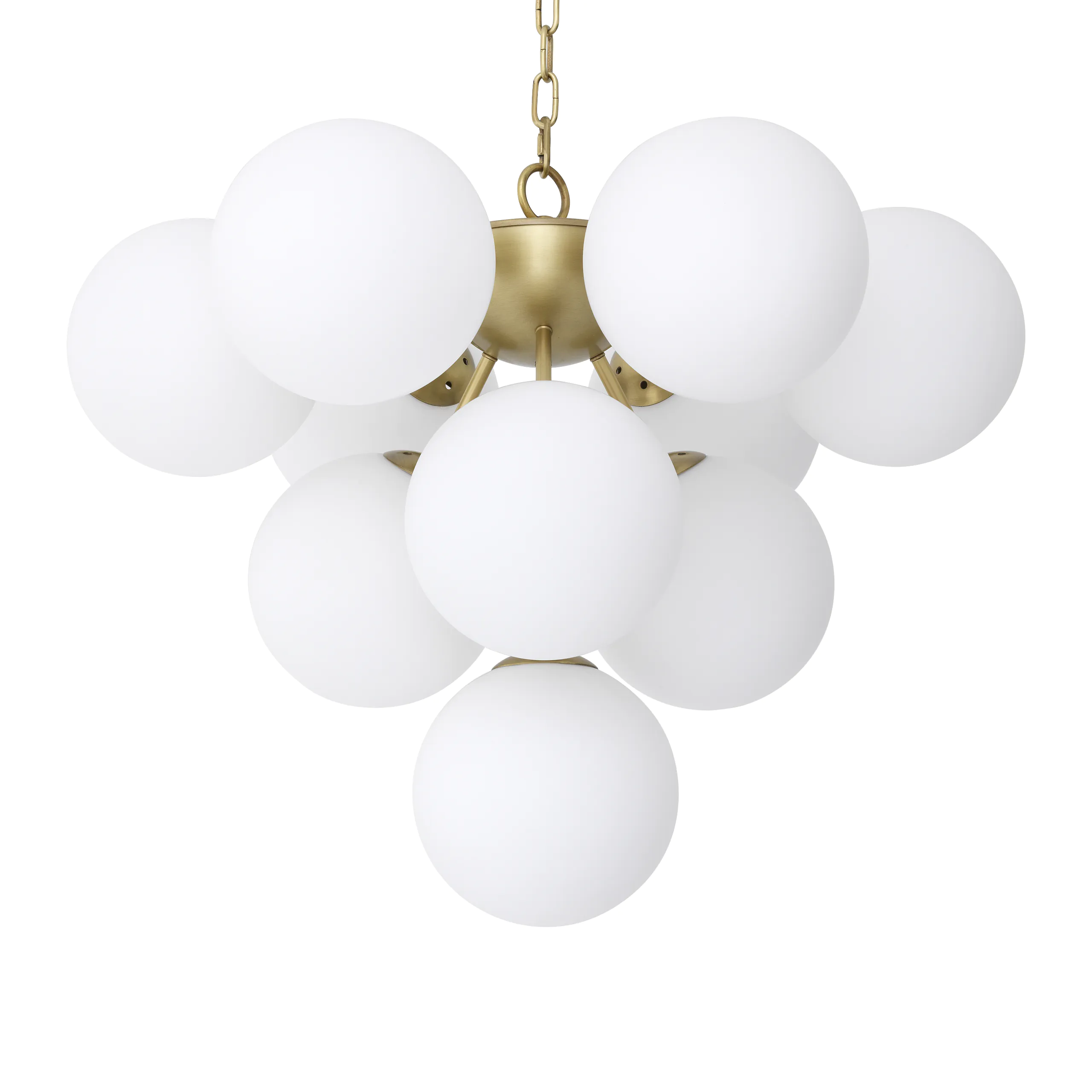 Reminding one of a bunch of grapes, this gorgeous pendant won’t go unnoticed. Thanks to its ten white glass spheres and antique brass finish, your room will look lovely up to the ceiling. Customisation available