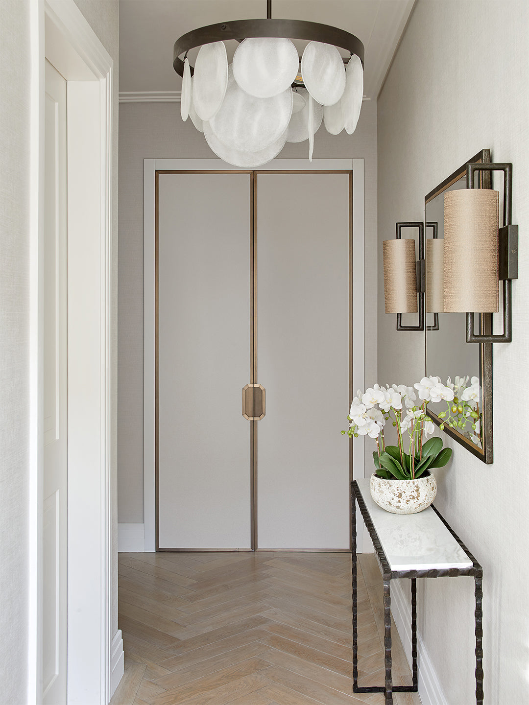 The Lille Wall Light by Porta Romana makes a stunning lighting solution for any contemporary or modern interior. Specialists in bespoke lighting solutions, Porta Romana individually craft each Lille Wall Light for a truly custom addition to your space. Featuring a sculptural steel frame, the Lille Wall Light lends a geometric elegance to an interior. Intersected with a tall cylindrical fabric shade in a Putty Silk finish, this piece complements most colour schemes seamlessly. Emitting a soft, even, and consistent glow, the Lille Wall Light is perfect for creating an inviting ambience within your home. Customisation available