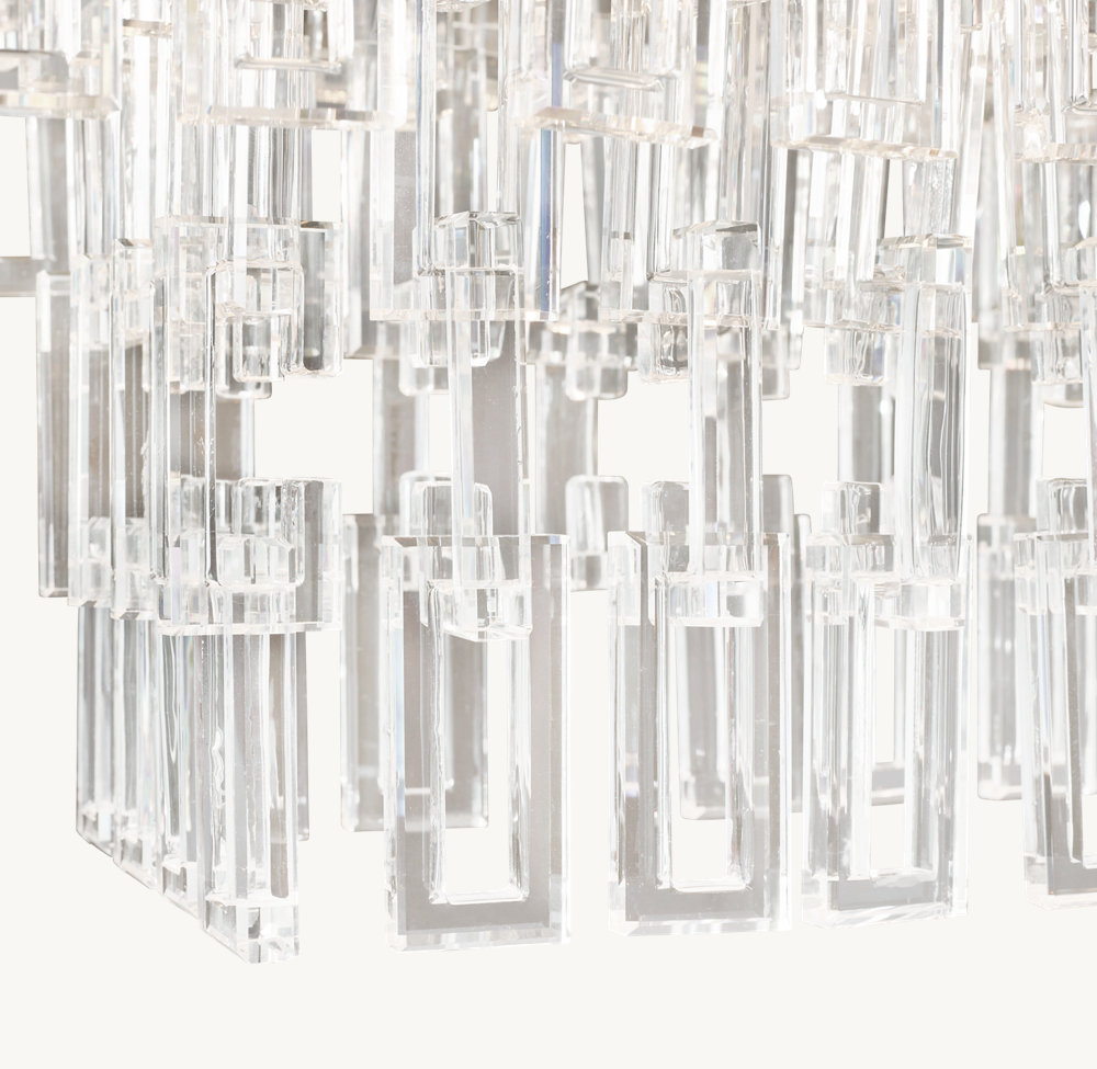 Inspired by industrial, machined metal chain, designer Jonathan Browning reimagines interlocking open and closed links in stunning crystal glass. Pure and minimal, the stylised chain link is created with over 1000 crystals and suspended sans wires, creating a resplendent cascade of shimmering light. Customisation available