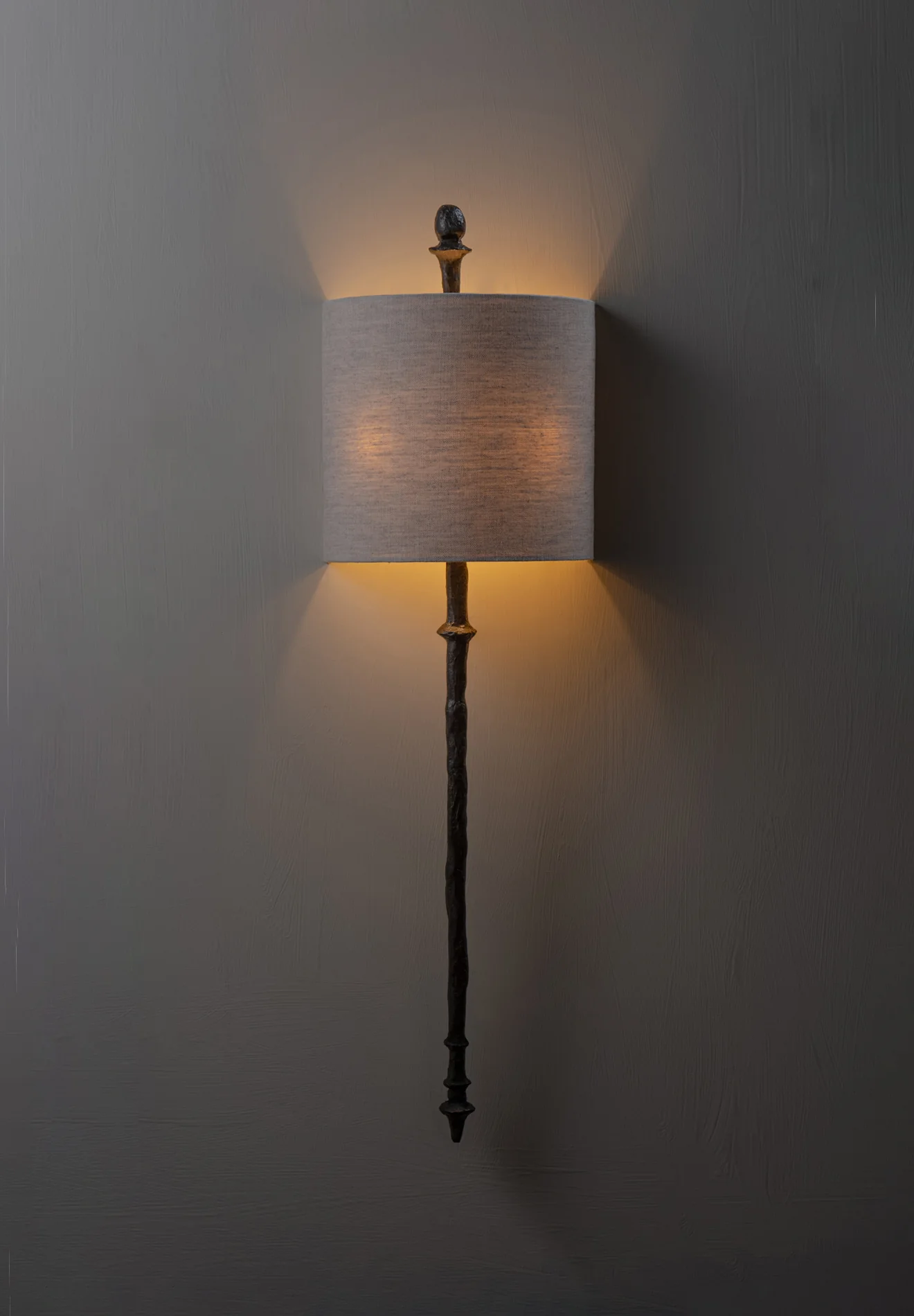 The Olivier Wall Light is evocative of sculptures created by the Giacometti brothers. The design has also been adapted into a table lamp and floor lamp. Customisation available