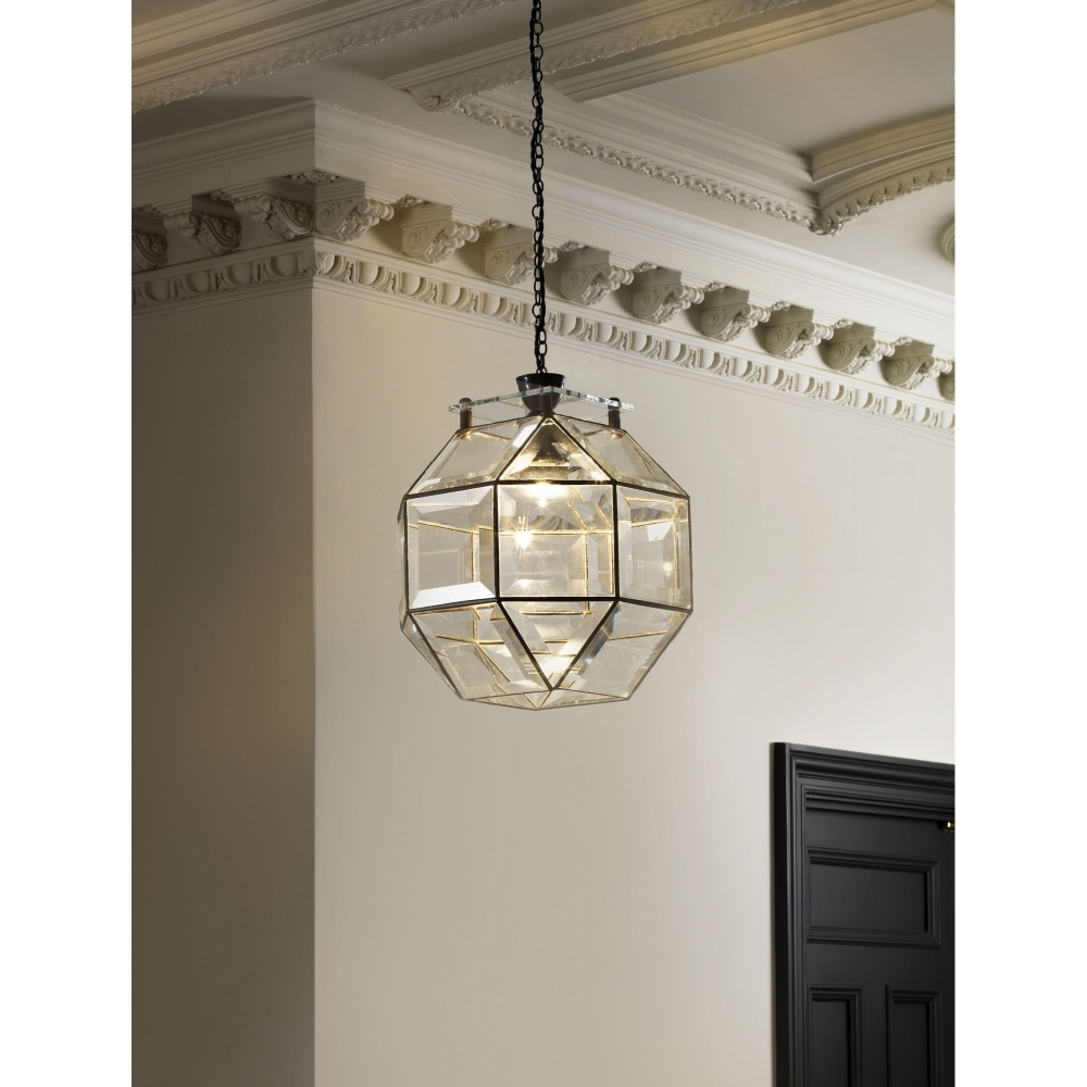 Enhance any interior with the Paragon Pendant Light by CTO Lighting. This contemporary take on the traditional lantern light makes a stunning addition to any residential or commercial design scheme. Whether styled individually or in multiples, this eye-catching pendant light emits a soft, diffused light throughout any space. Designed with a set of bevelled clear glass panels, all supported and encased in a bronze frame and chain fitting, this timeless piece is meticulously handcrafted by CTO Lighting’s team using traditional stain glass window methods of construction. Encompassing the very best of British craftsmanship, the Paragon Pendant Light makes a sensational finishing touch to any interior scheme. Customisation available