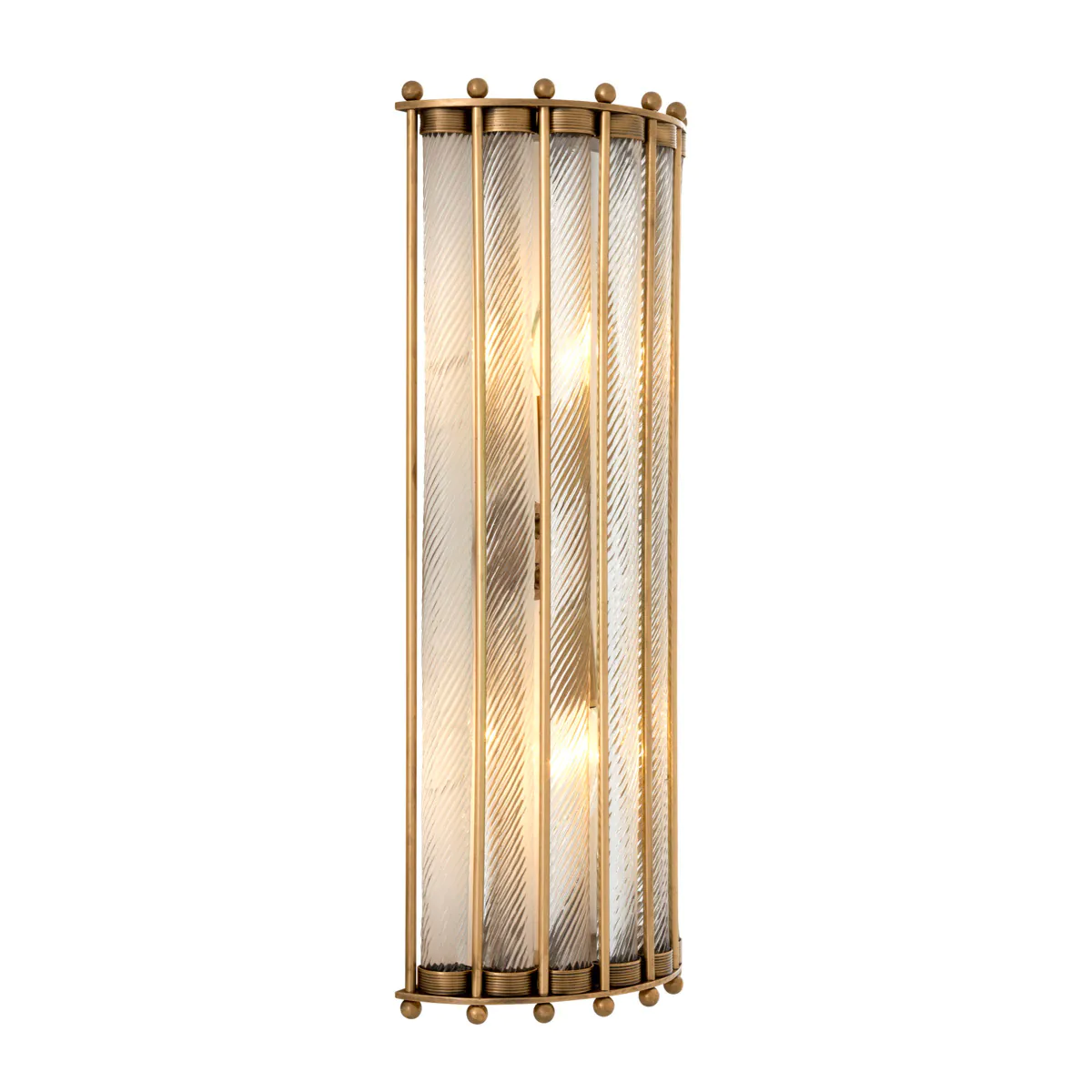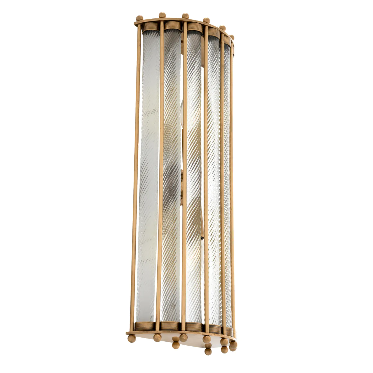 Invite the gorgeous aesthetic of the Tiziano Wall Lamp into your home. By pairing vintage-inspired lattice and finials with contemporary design, this refined sconce exudes timeless appeal. The antique brass finish drum shade features hand sculpted glass rods. Customisation available