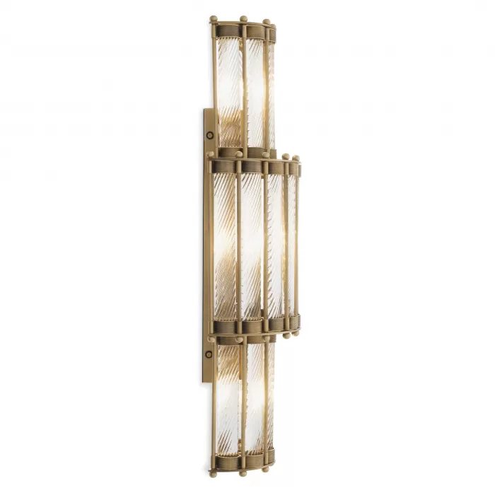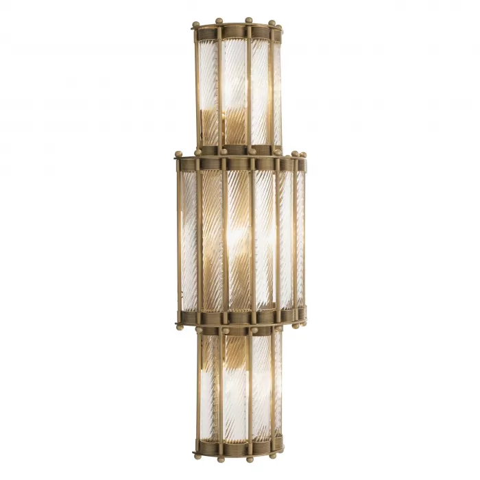 Invite the gorgeous aesthetic of the Tiziano Wall Lamp into your home. By pairing vintage-inspired lattice and finials with contemporary design, this refined sconce exudes timeless appeal. The antique brass finish drum shade features hand sculpted glass rods. Customisation available