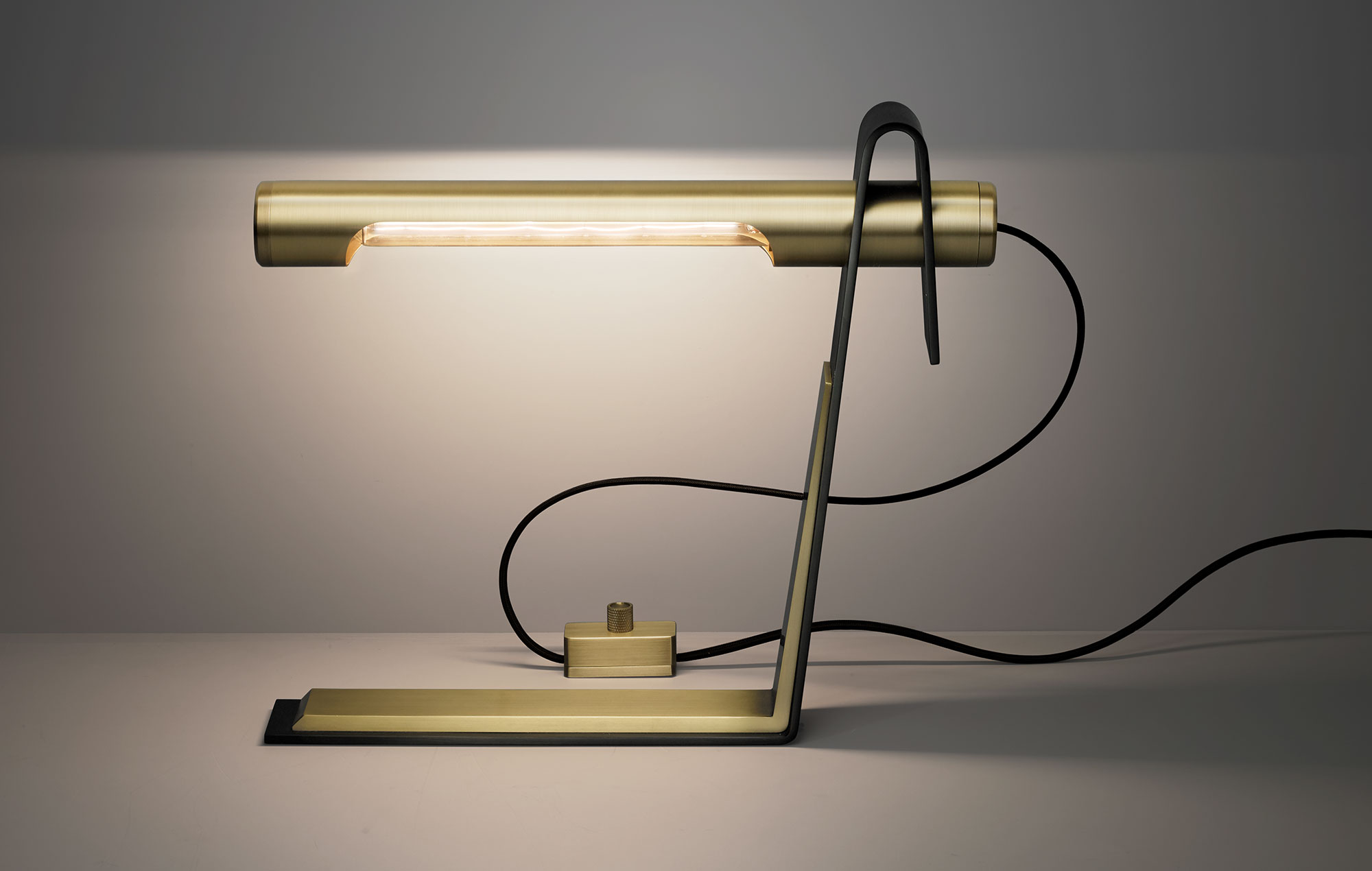 The Tourville Table Lamp is machined from solid brass. All parts are hand polished and patina’d. The shade can be positioned at various angles. Customisation available