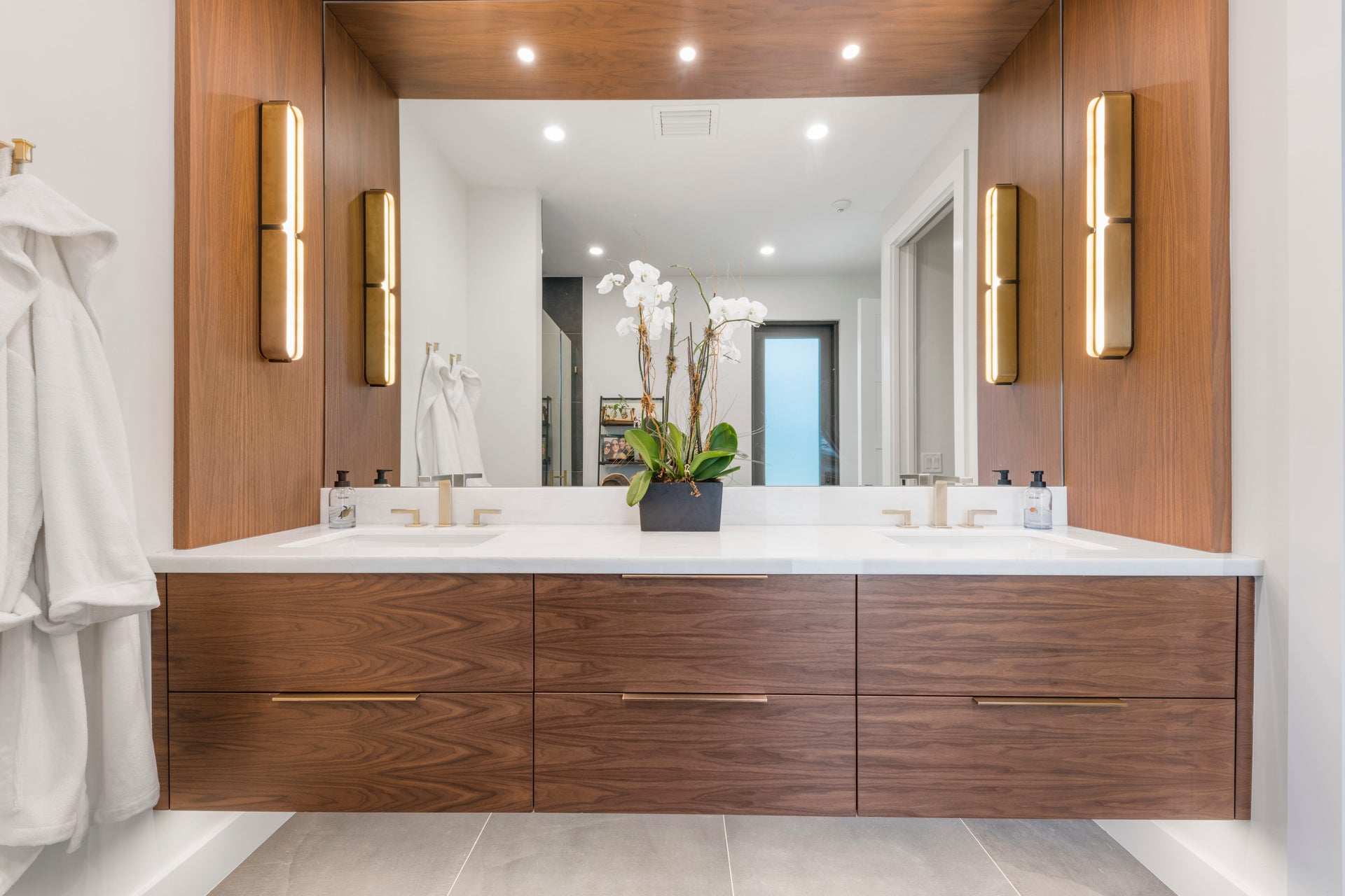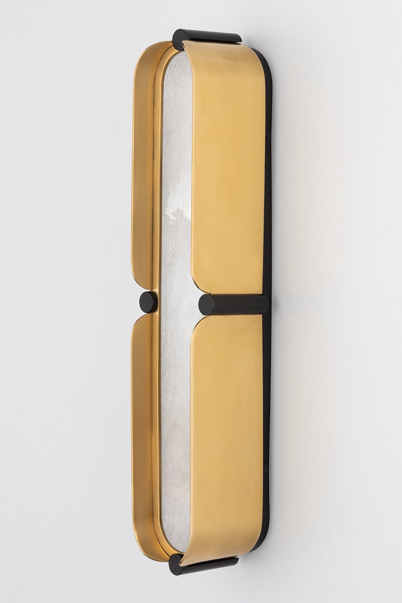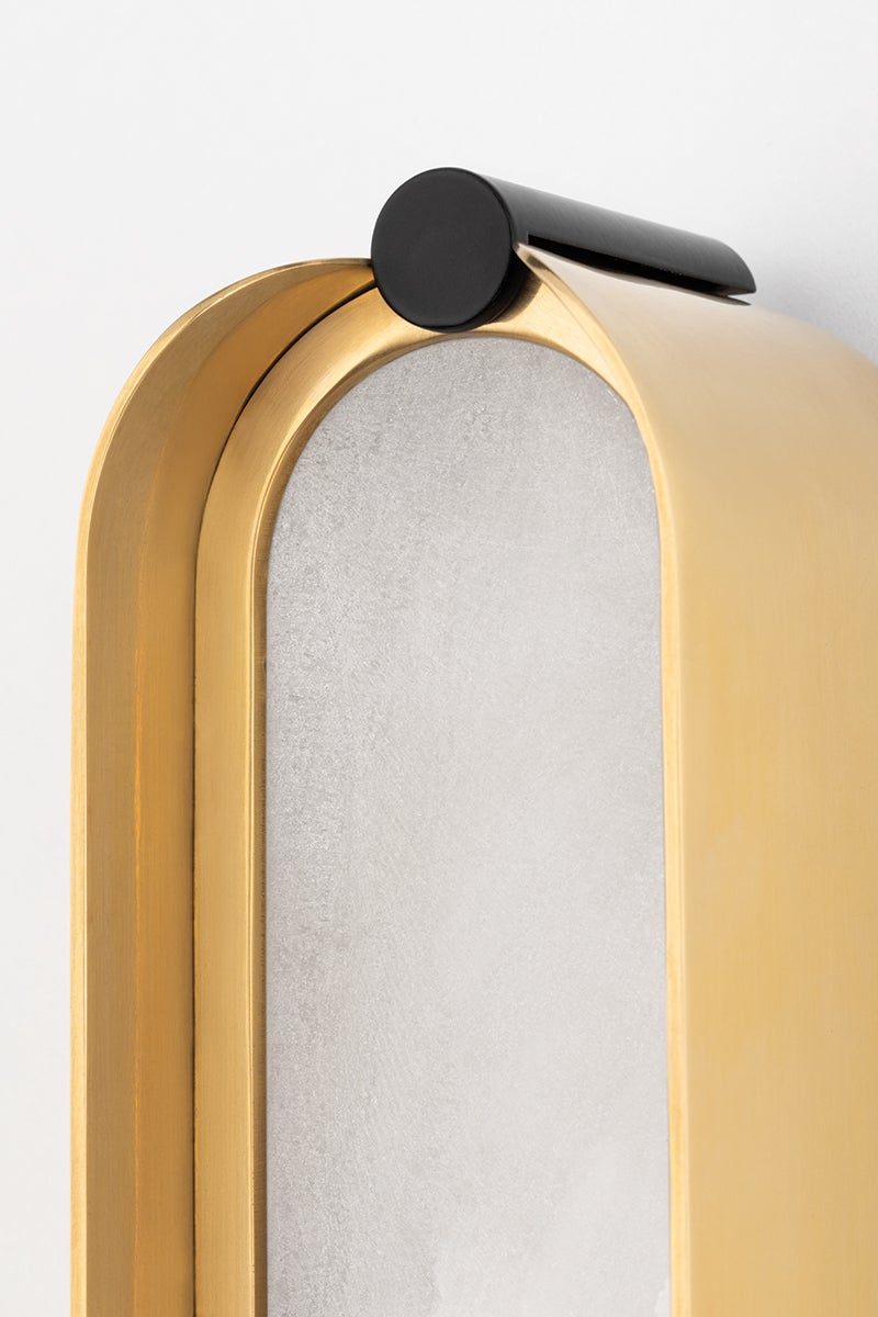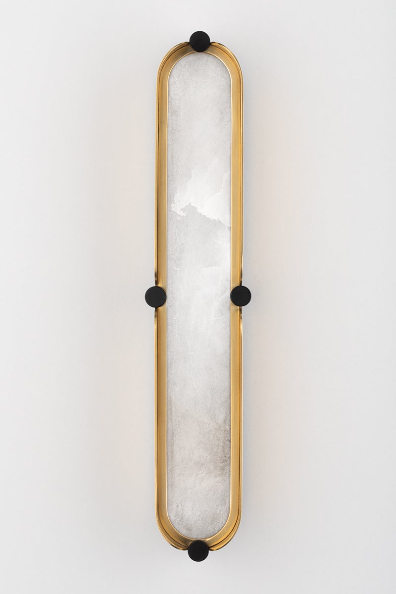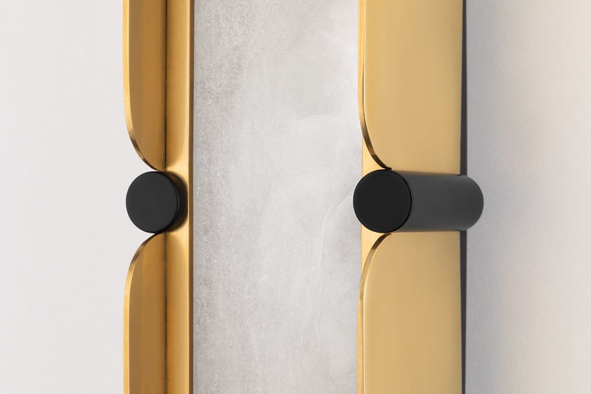 Curved lines, two-tone finishes and hidden LED lighting are the hallmarks of Tribeca's sleek design. The bath and vanity fixtures (available in three sizes) feature shades made of the finest Spanish alabaster that emit a soft, organic glow. Bright LED light shines through open spaces in the chandelier (also available in three sizes) and linear styles. Finishes include Ages Brass/Black and Burnished Nickel/Black. Hiding soft LED lights behind stunning Spanish alabaster shades, the Tribeca Bath Bracket looks beautiful on either side of a vanity. Available in a choice of tasteful two-tone finishes. Customisation available