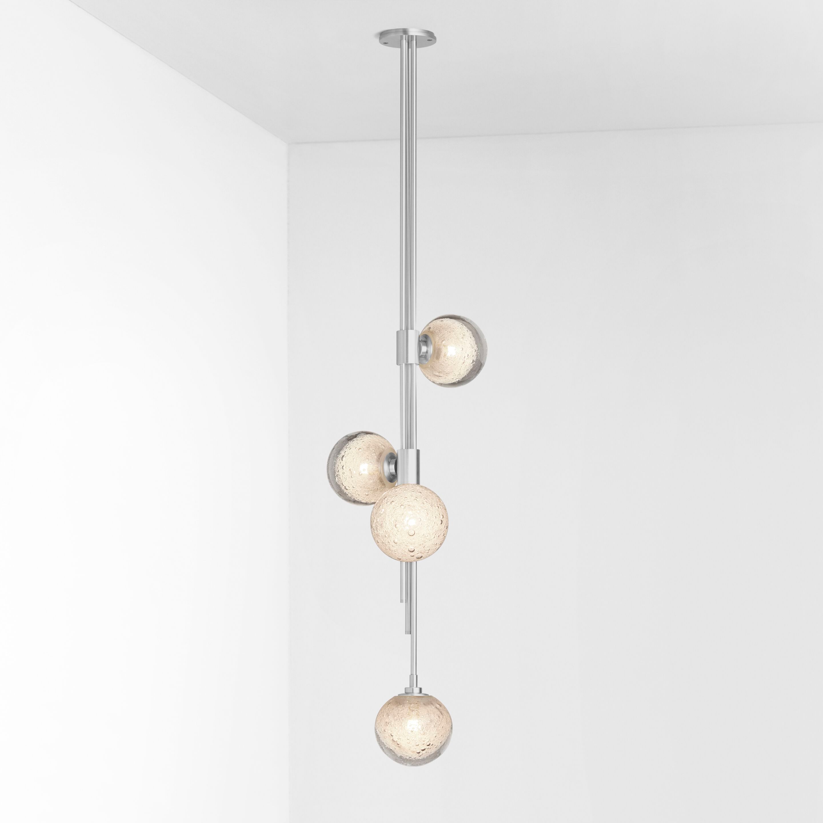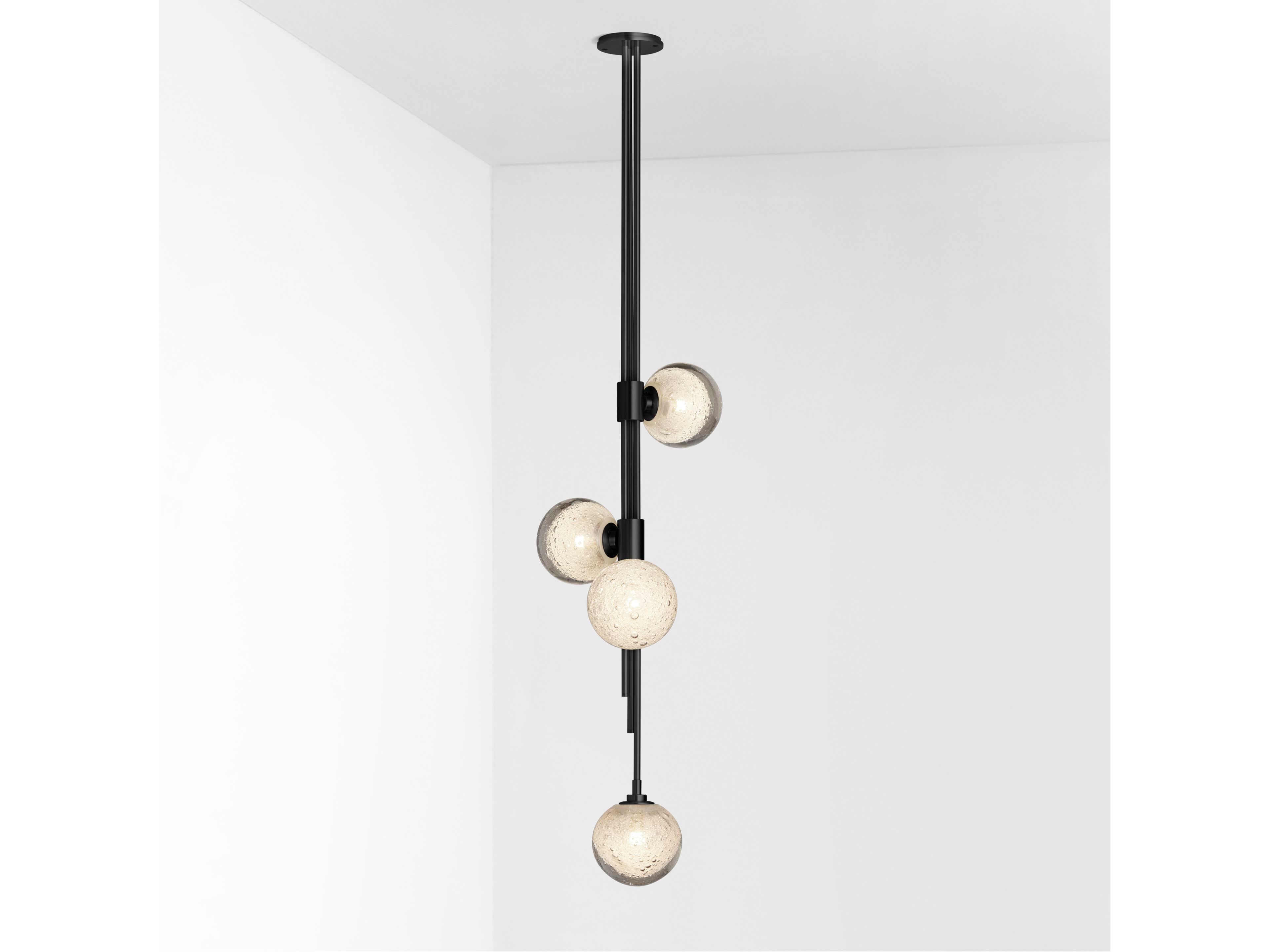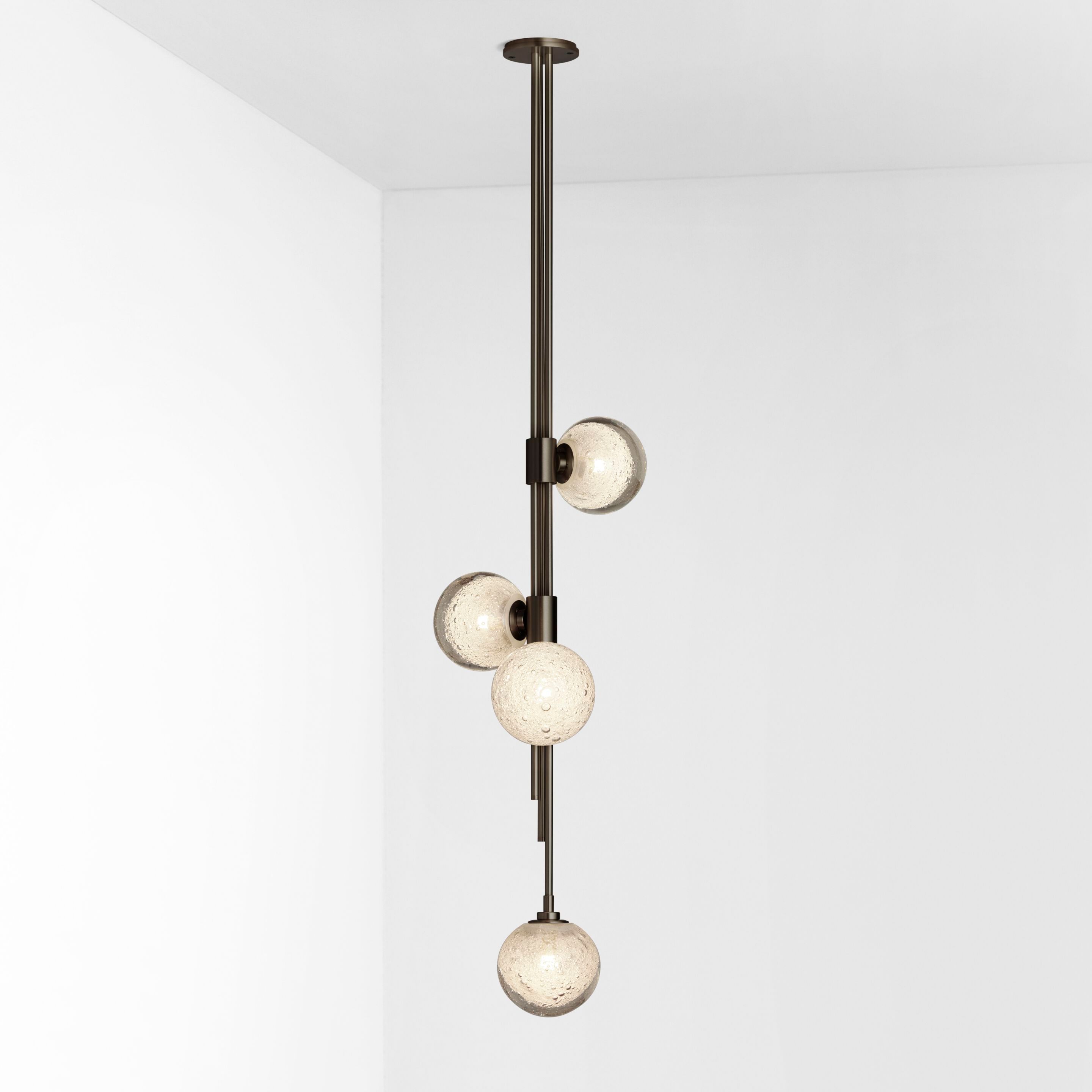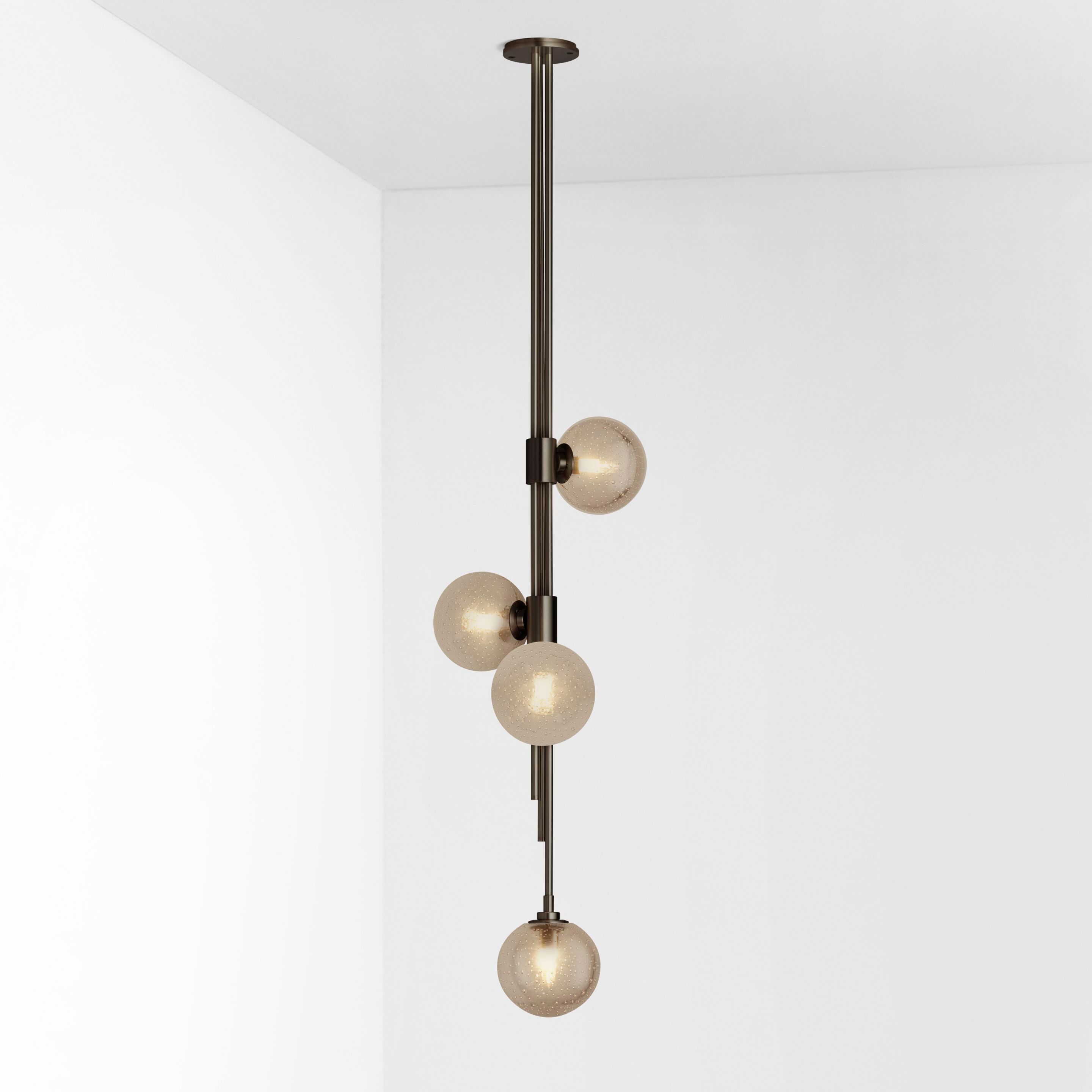 TRILOGY collection exemplifies contemporary sophistication of yesteryear drawing from art deco imaginings with staggered rods, jewel like cuff detailing and mouth-blown orbs. Showcasing deceptively sophisticated engineering, a hallmark of Articolo’s growing body of work, the breath-taking TRILOGY marries finely crafted metalwork with the superb beauty of artisan glass Customisation available